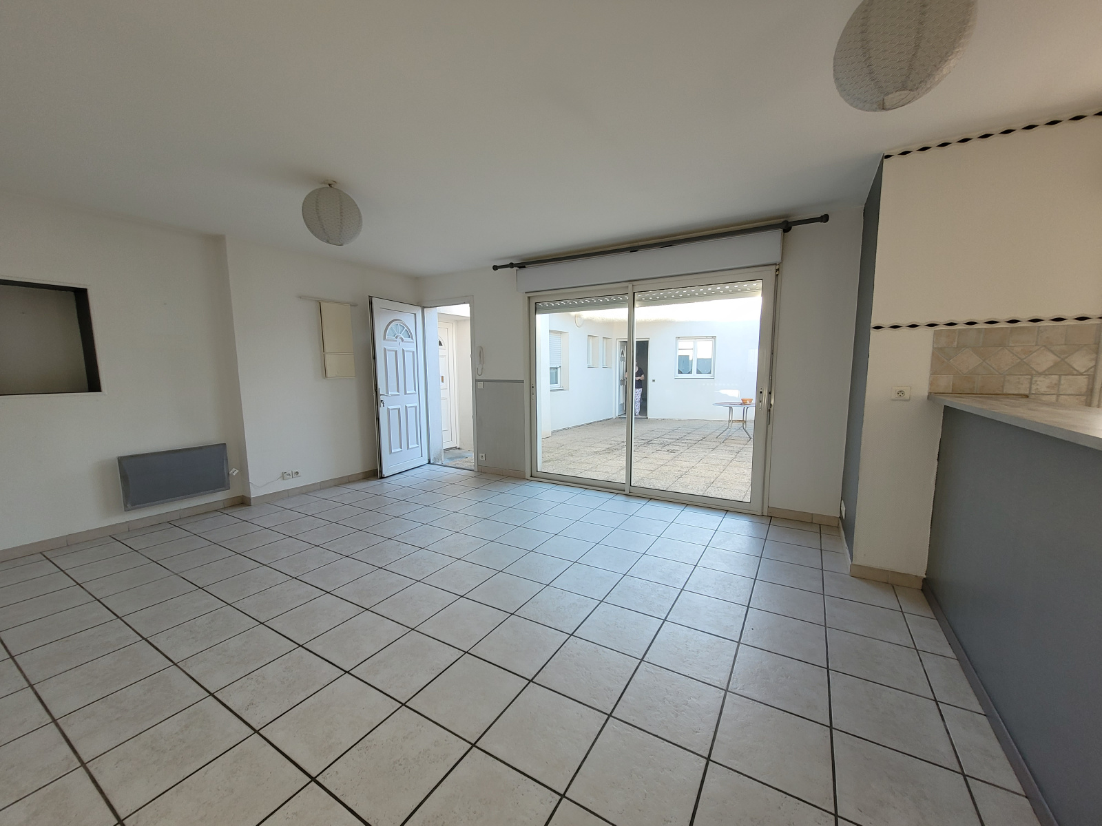 SAUJON, rue Carnot Appartement T3 de 55 m² env offrant: Séjour (expo ouest) ouv s/ terrasse commune - Cuisine américaine ouv sur séjour (emplacement pour Lave-linge, cuisinière et frigo) - 2 chambres - Sde - WC Indpt. Cave au rez de chaussée - Local commun - Chauff élec - Antenne TV collective.Interphone. Dans immeuble. Réf exigées. DISPONIBLE LE 01/02/2026.