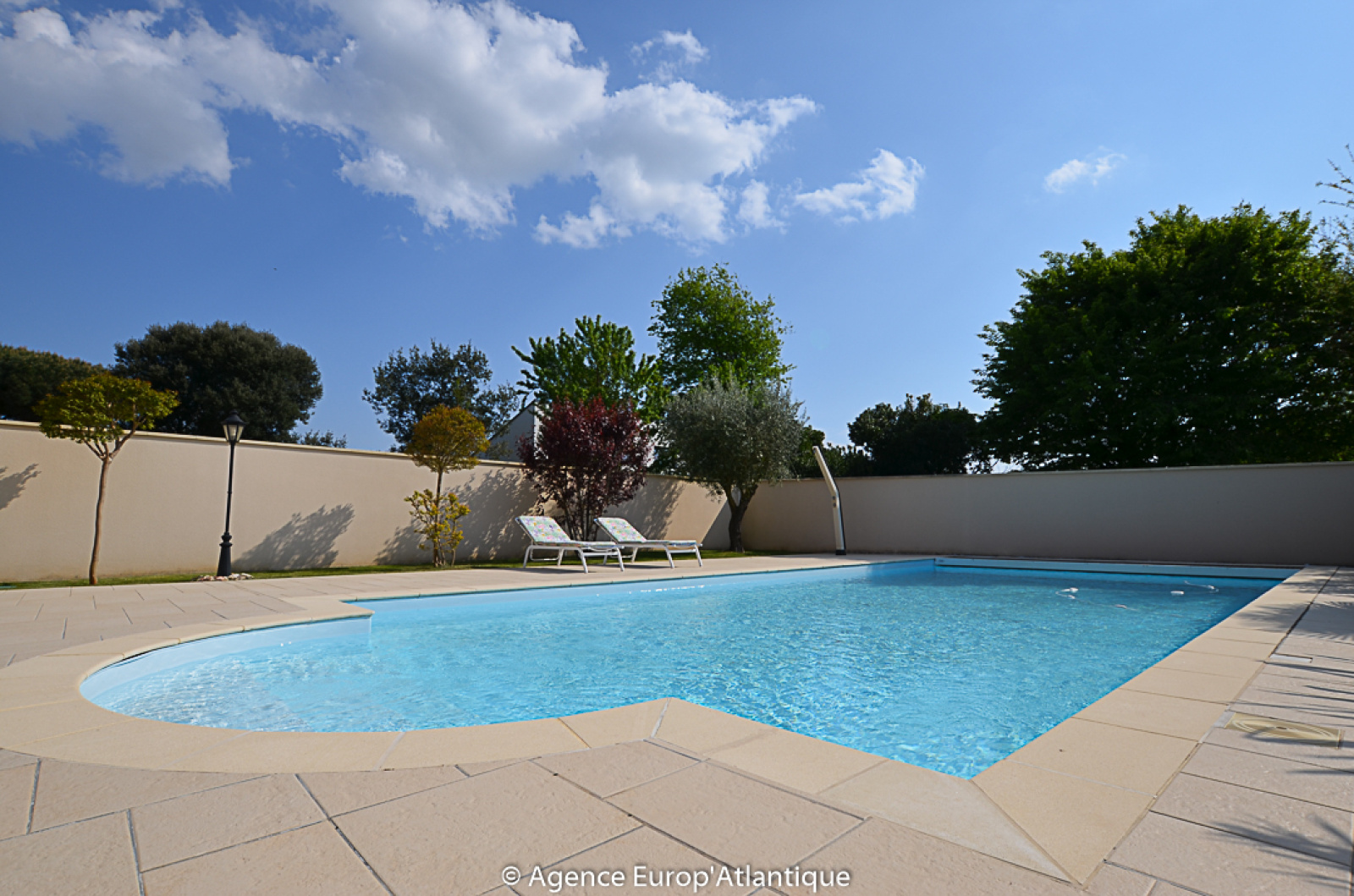 PISCINE DE 10X5 traditionnelle filtration automatique par électrolyse au sel - Sécurisée par rideau électrique de surface.