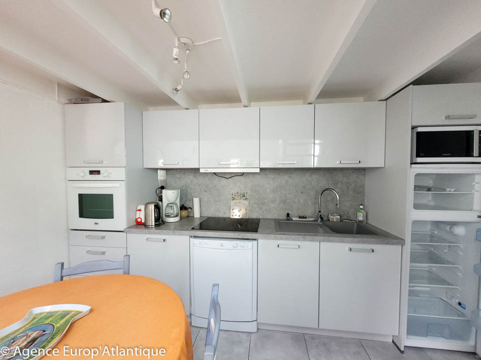Au rez-de-chaussée : Séjour (14,79m²) avec coin cuisine équipé (Plaque induction - Hotte- Four-LL-LV- Frigo congel - MO)