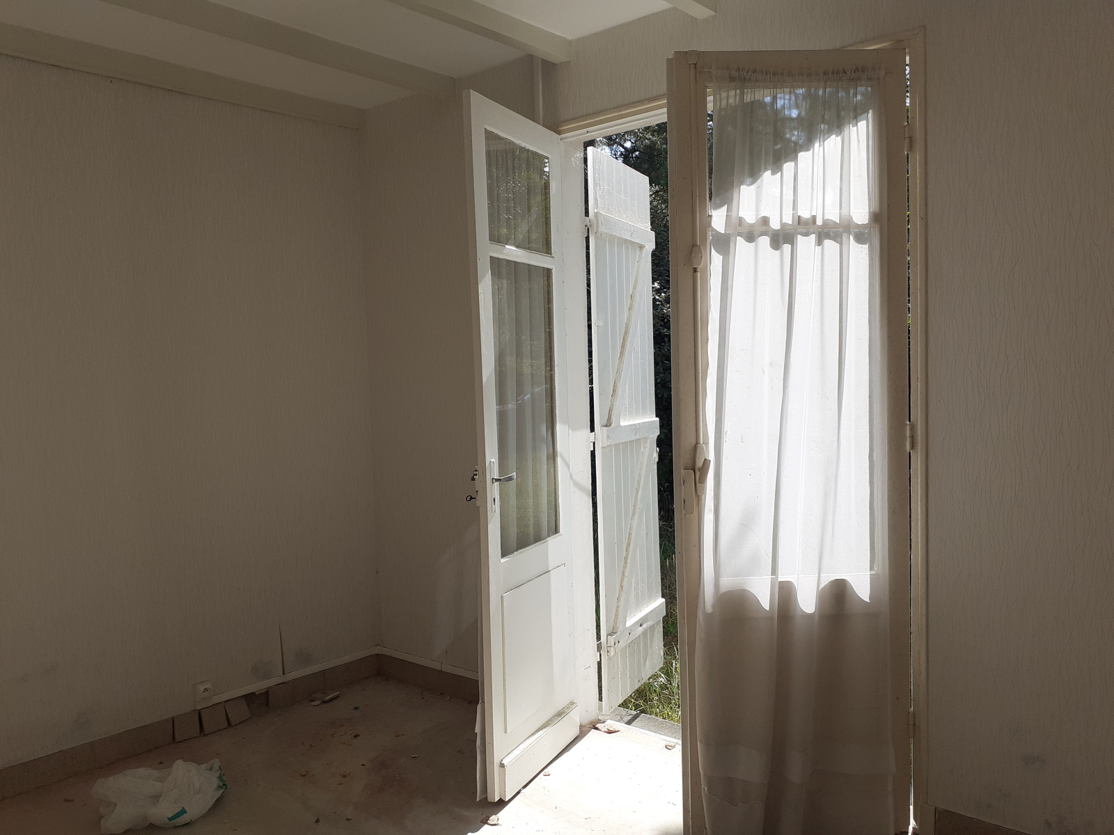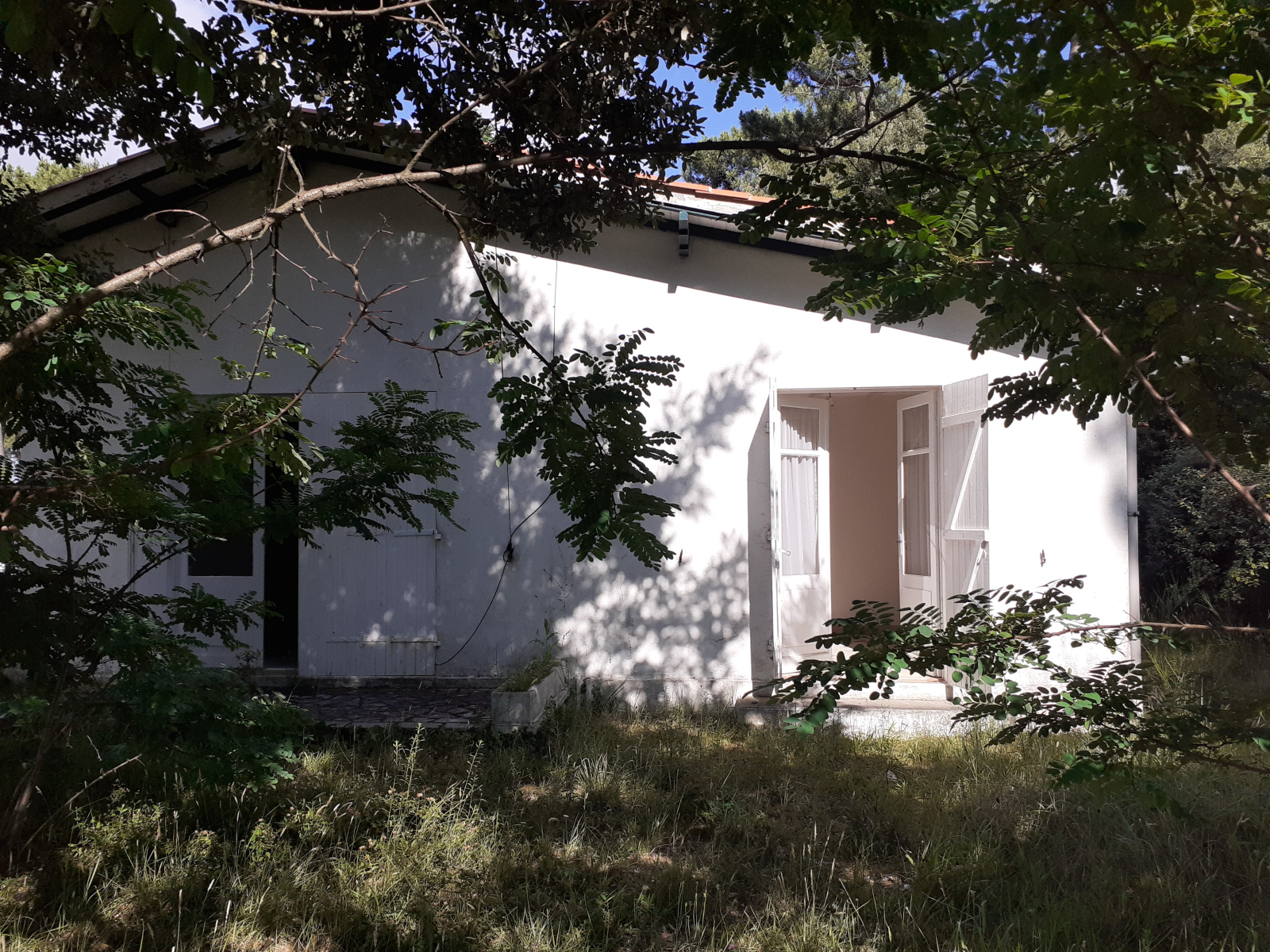 Villa de 55m² habitable: Séjour, 2 chambres, cuisine, salle d'eau, wc. Cellier attenant, cabanon de jardin. Terrain de 622m². Située dans un quartier calme et boisé.