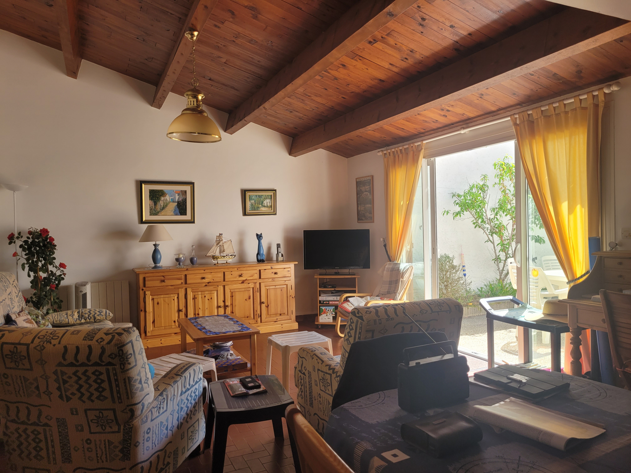 Villa de 80m² comprenant: Entrée, Séjour ouvrant sur Patio à l'Ouest, cuisine aménagée et équipée avec passe-plats, dégagement 3 chambres, salle d'eau (douche italienne, wc. Patio avec sortie sans vis-à-vis. Cabanon. Parking. Maison entretenue. A voir rapidement!