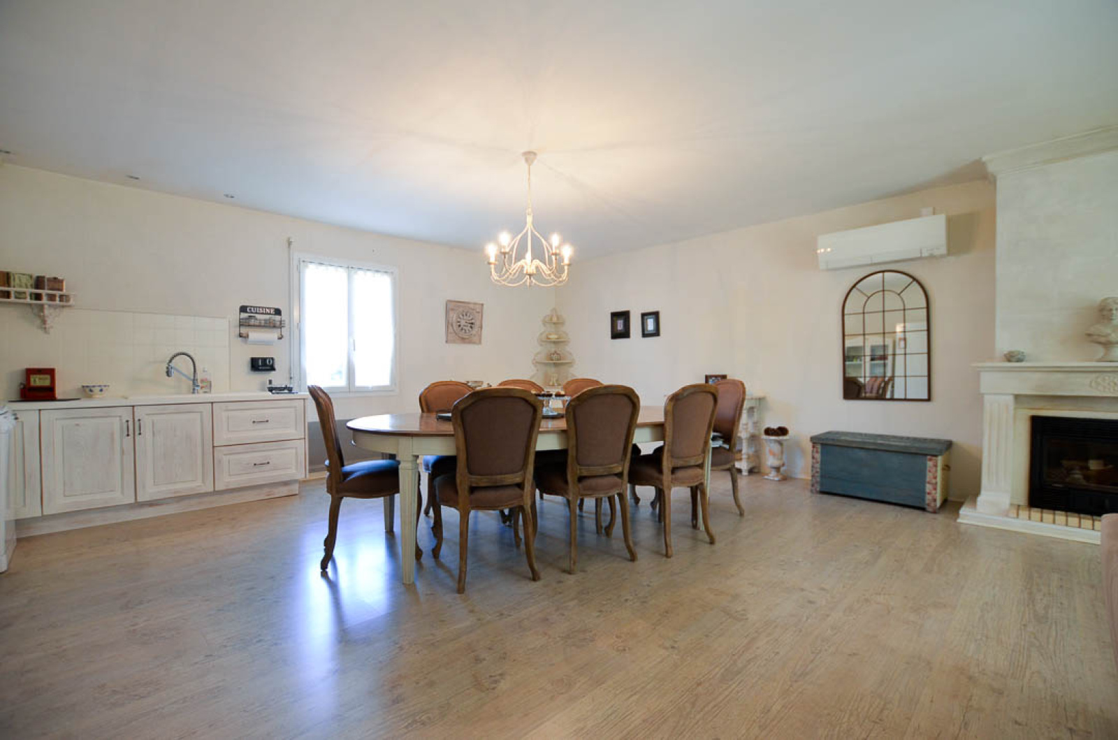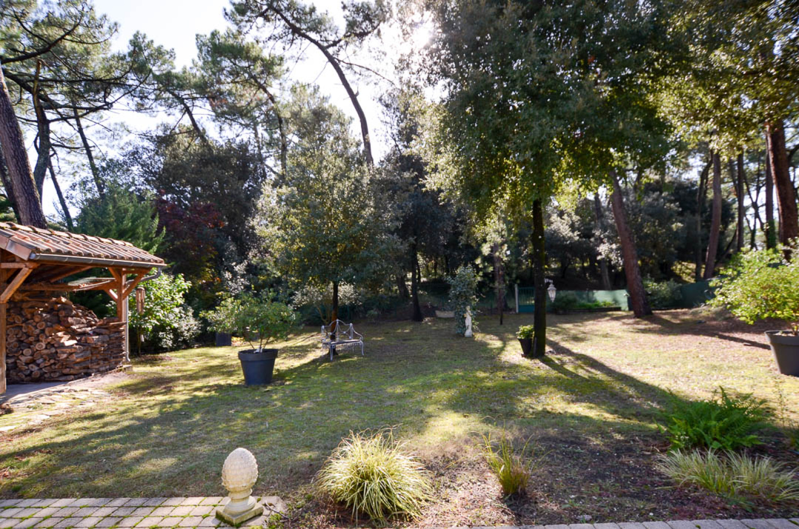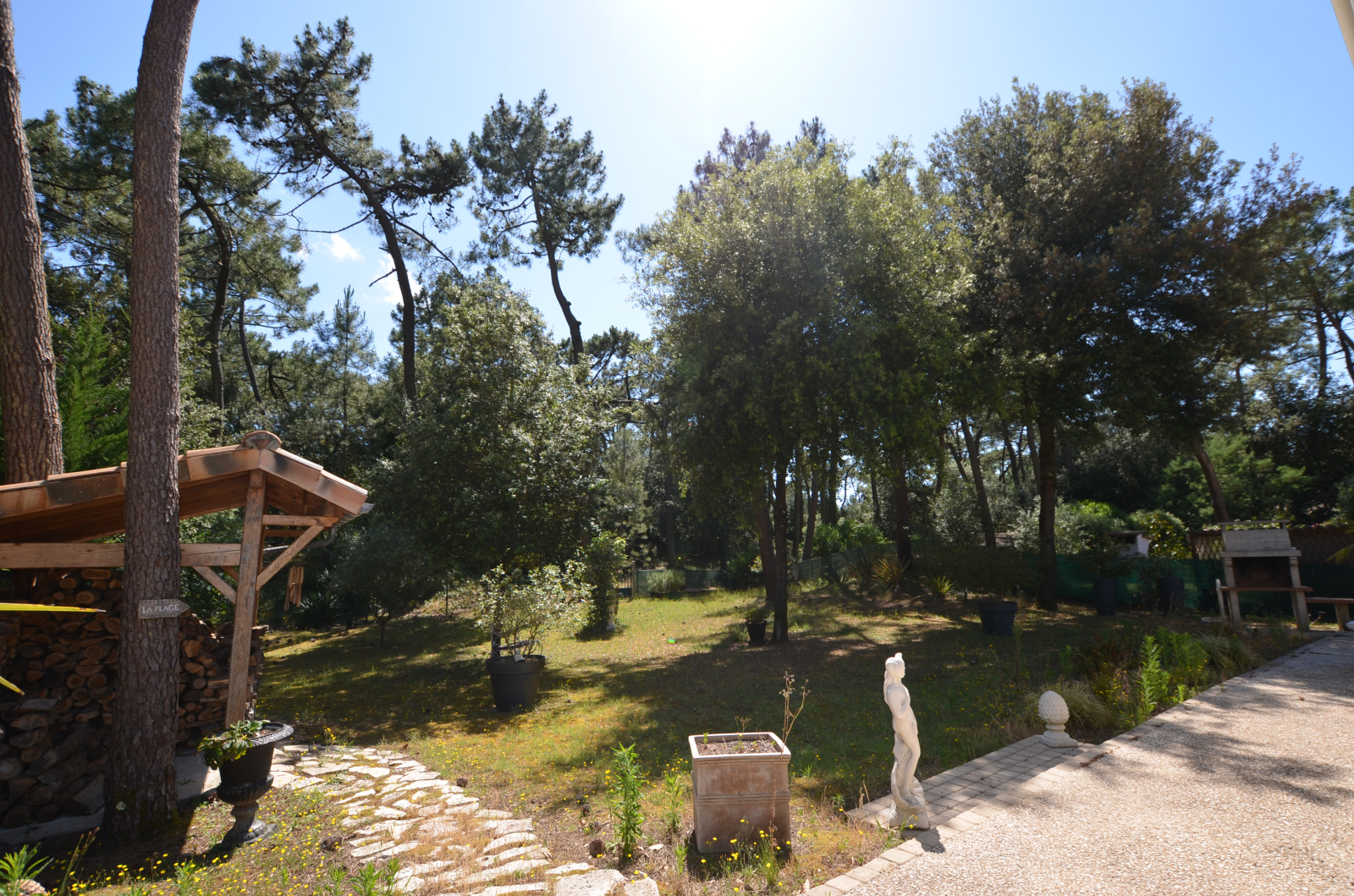 MAISON Rez de chaussée surélevé de 4 pièces principales sur 116 m2 environ, comprenant : Entrée dans Belle pièce de vie de 54 m2, ouvrant au Sud sur terrasse, avec insert et Coin cuisine équipé, 3 Chambres (13.05m² - 11.90m² -11.74m² )avec placards coulissants, Salle d'eau, WC. TERRASSE couverte exposée sud - Belle vue sur PInède - SOUS-SOL TOTAL de 118m² : Grand Garage 2 voitures, remise bateau ou remorque, accessible de l'intérieur par ascenseur, coin lingerie. Porte garage et portail Alu à commande électrique. Forage . Chauffage électrique et Clim réversible. Abri bois. Stationnement en béton désactivé. BEAU TERRAIN arboré de 968 m².