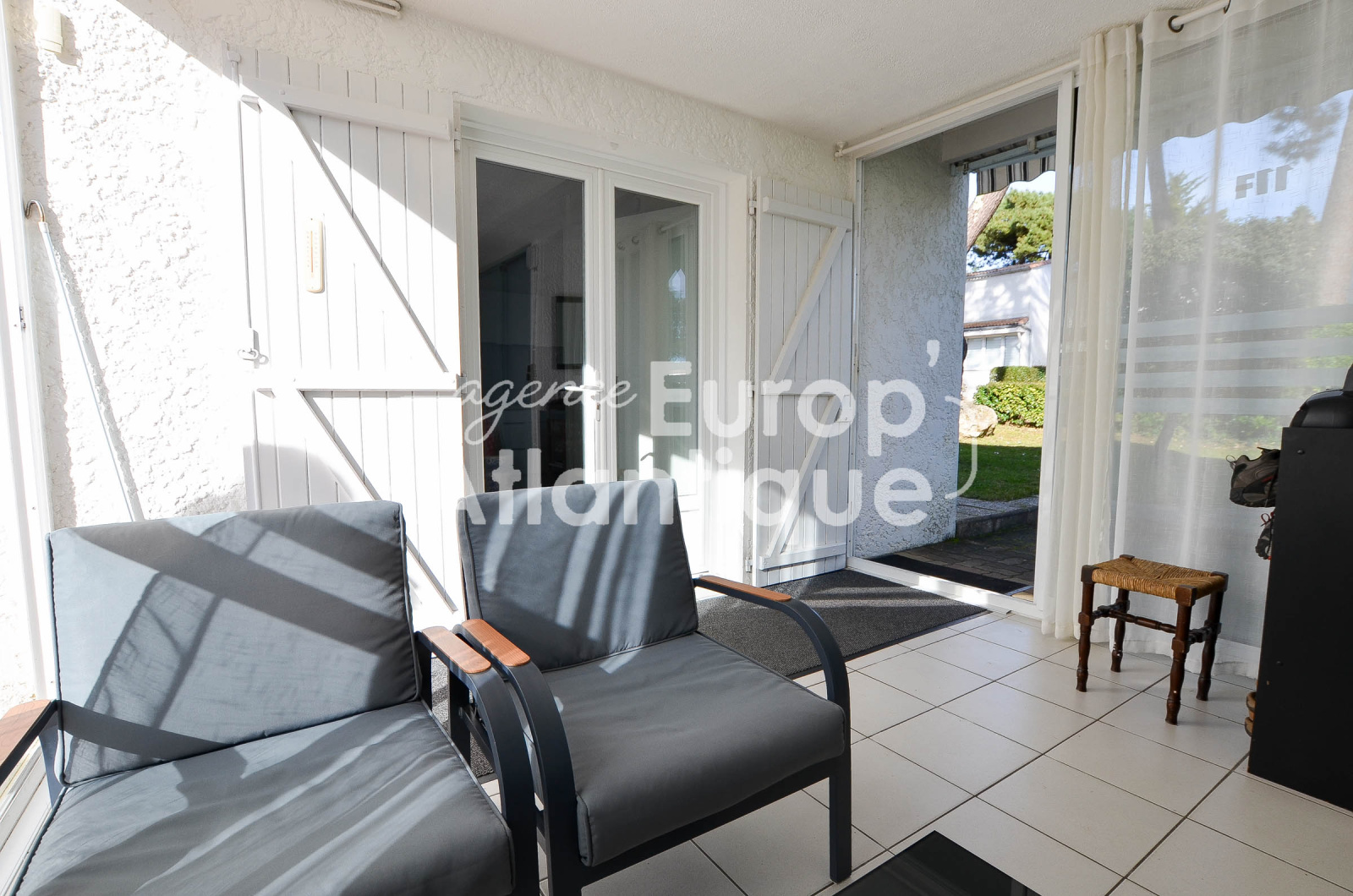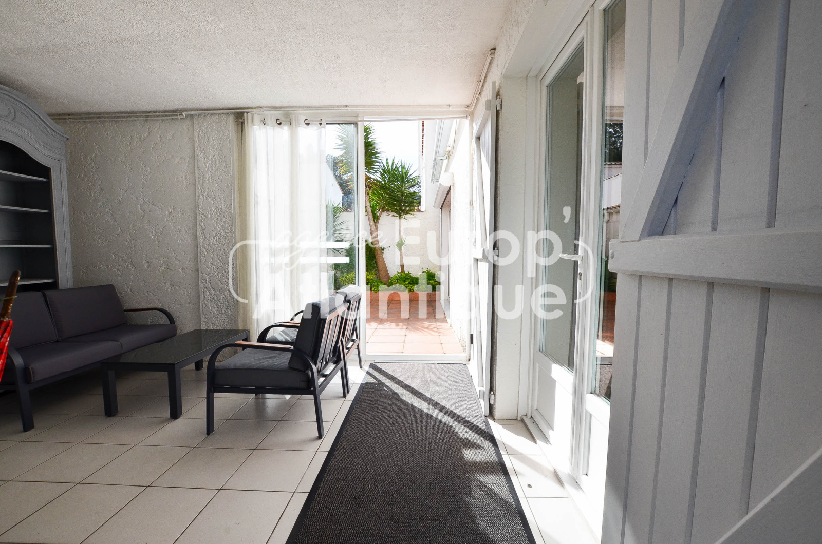 Entrée dans patio couvert fermé par baies vitrées avec salle d’eau sortie de plage et WC.
