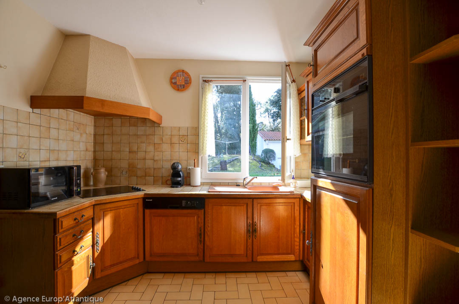 Villa de plain pied de 112 m² env comprenant: Séjour avec cheminée 27m2 Cuisine américaine équipée, 3 chambres, salle d'eau, wc. dégagement : wc, 4ème chambre avec salle d'eau privative et wc séparé. Chauffage électrique. Terrasse couverte au sud, vue pinède. Garage indépendant 16m2 avec grenier aménageable. Parking pour véhicules : bateau, camping-car... Terrain Clos de 627m² avec arrossage automatique.
